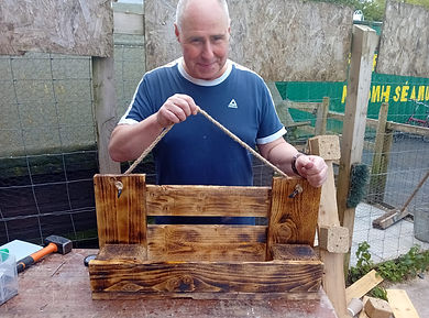 Our volunteers showcase their creativity by building and crafting useful items from old pallets and other recycled materials, contributing to our sustainable practices.